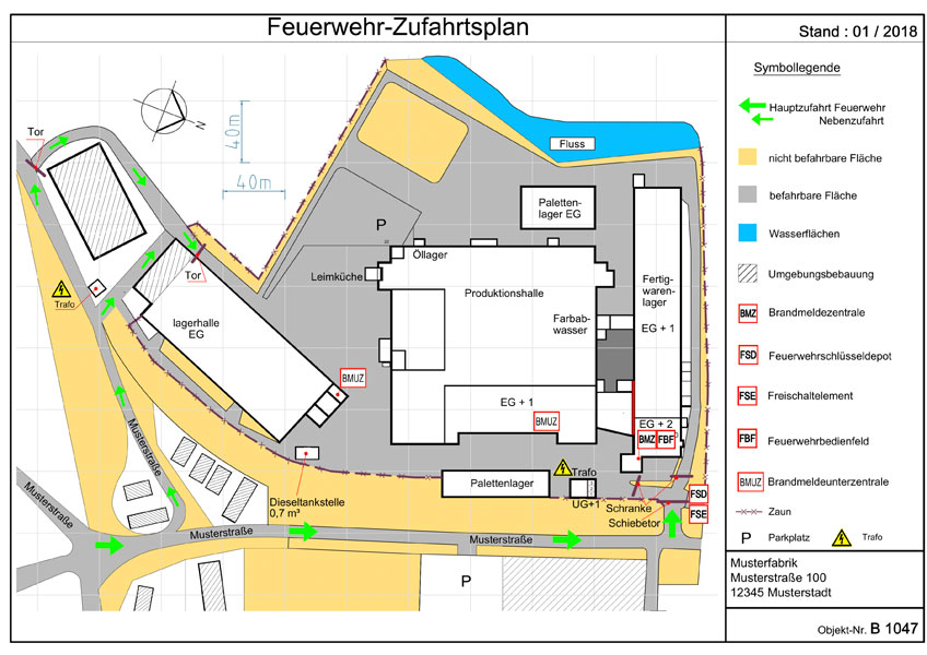 Im Brand- und Katastrophenfall hat die schnelle und effektive Brandbekämpfung sowie die Schadensbegrenzung oberste Priorität. Hierzu ist eine schnelle Orientierung der Einsatzkräfte mittels Feuerwehrplan notwendig, die Kenntnisse über die Gebäude- und Brandschutzstrukturen und die besonderen Gefahrenpunkten erfordert. Feuerwehrpläne sind Bestandteil der objektbezogenen Einsatzplanung und ermöglichen einen schnellen Überblick über die Struktur und Nutzung Ihres Gebäudes sowie möglicher Risiken.